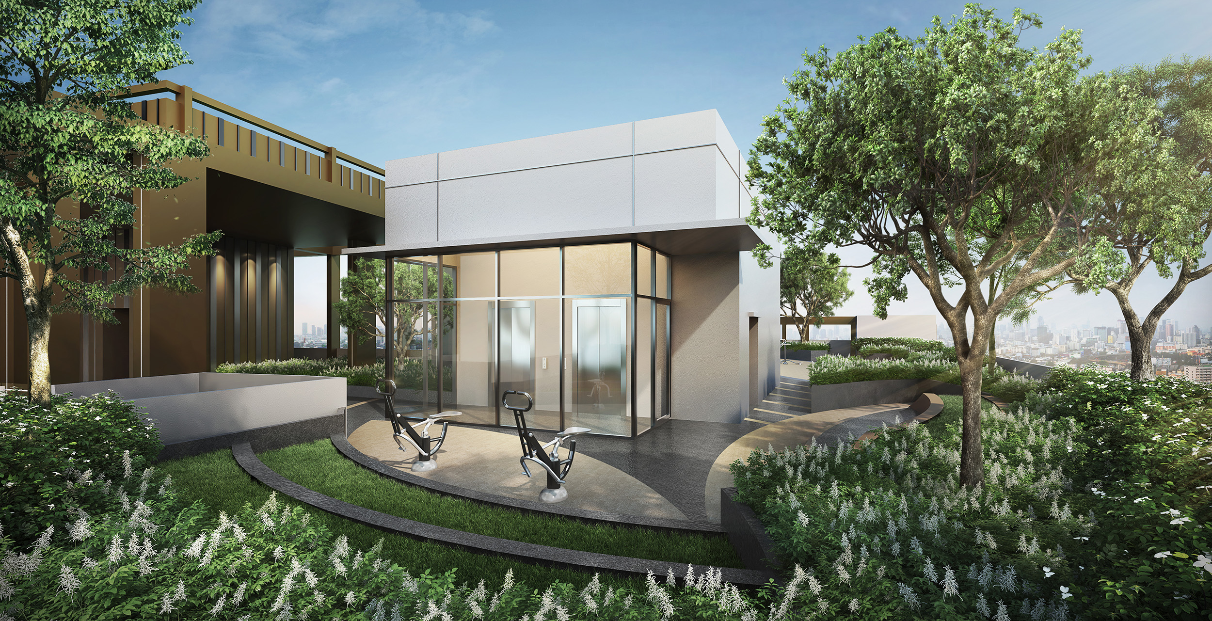 โครงการมีพื้นที่สีเขียวรวม 30% เป็นพื้นที่สวนอยู่บริเวณชั้นล่าง และกระจายอยู่ภายในพื้นที่พักผ่อนส่วนต่างๆ โครงการ บริเวณชั้นล่างของโครงการประกอบไปด้วย พื้นที่สวน Eco lobby, Co-Working Zone ที่สามารถรองรับ Work from Home ในยุค New Normal ได้อย่างเหมาะเจาะ ส่วนพื้นที่ชั้น 2-3 จะเป็นที่จอดรถเต็มพื้นที่ ขณะที่ชั้น 4-8 เป็นพื้นที่จอดรถ และห้องชุดพักอาศัย รวมแล้วมีที่จอดรถประมาณ 300 คัน (รวมจอดซ้อนคัน) หรือประมาณ 40% ของจำนวนห้องพักอาศัย