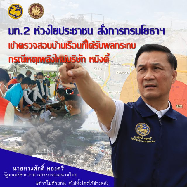 มท.2 สั่งการกรมโยธาฯ เข้าตรวจสอบบ้านเรือนที่ได้รับผลกระทบ กรณีเหตุเพลิงไหม้โรงงานหมิงตี้