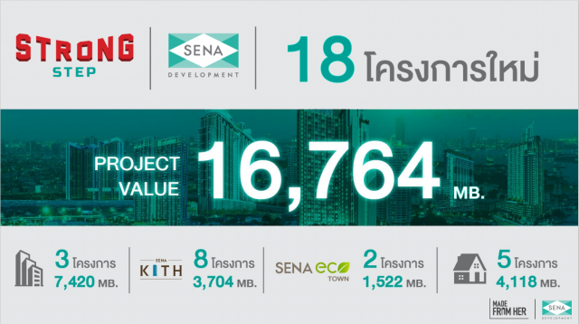 ในช่วงที่ผ่านเปิดแล้ว 2 โครงการ คือ เสนาคิทท์ เวสต์เกต-บางบัวทอง และ เสนาคิทท์ ฉลองกรุง-ลาดกระบัง ปัจจุบันบริษัทมียอดขายที่รอรับรู้รายได้จากการโอน (Backlog) คิดเป็นมูลค่า 7,399 ล้านบาท (ณ สิ้น 31 มีนาคม 2564) และรับรู้รายได้ในช่วงที่เหลือของปีนี้ 4,390 ล้านบาท และทยอยรับรู้ในปีถัดไปตามลำดับ ขณะที่ตั้งเป้ารับรู้รายได้ 10,000 ล้านบาท และเป้ายอดขายที่ 11,000 ล้านบาท