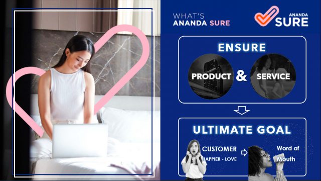 “Ananda Sure” คือ ทุกเสียงสะท้อนของลูกค้าในทุกๆ การสัมผัสตั้งแต่ก่อนซื้อจนกระทั่งหลังซื้อ โดยจะถูกส่งไปถึงตั้งแต่ระดับปฏิบัติการจนถึงผู้บริหารระดับ CEO ด้วยระบบการจัดการทั้งด้านข้อมูลที่ผสมผสานด้วยเทคโนโลยี เพื่อที่จะได้รับข้อมูลข่าวสารได้อย่างชัดเจน ช่วยประมวลผลในการสร้างมาตรฐานใหม่ที่ตอบโจทย์ลูกค้าได้ดีกว่าเดิม ซึ่งปฏิบัติการนี้สามารถนำเสนอบริการและเข้าถึงลูกค้าได้อย่างมีประสิทธิภาพ ทำให้สามารถสร้างมูลค่าเพิ่มให้กับทรัพย์สินที่มีอยู่ ส่งผลดีให้กับลูกค้าและอนันดาในระยะยาวด้วยเช่นกัน