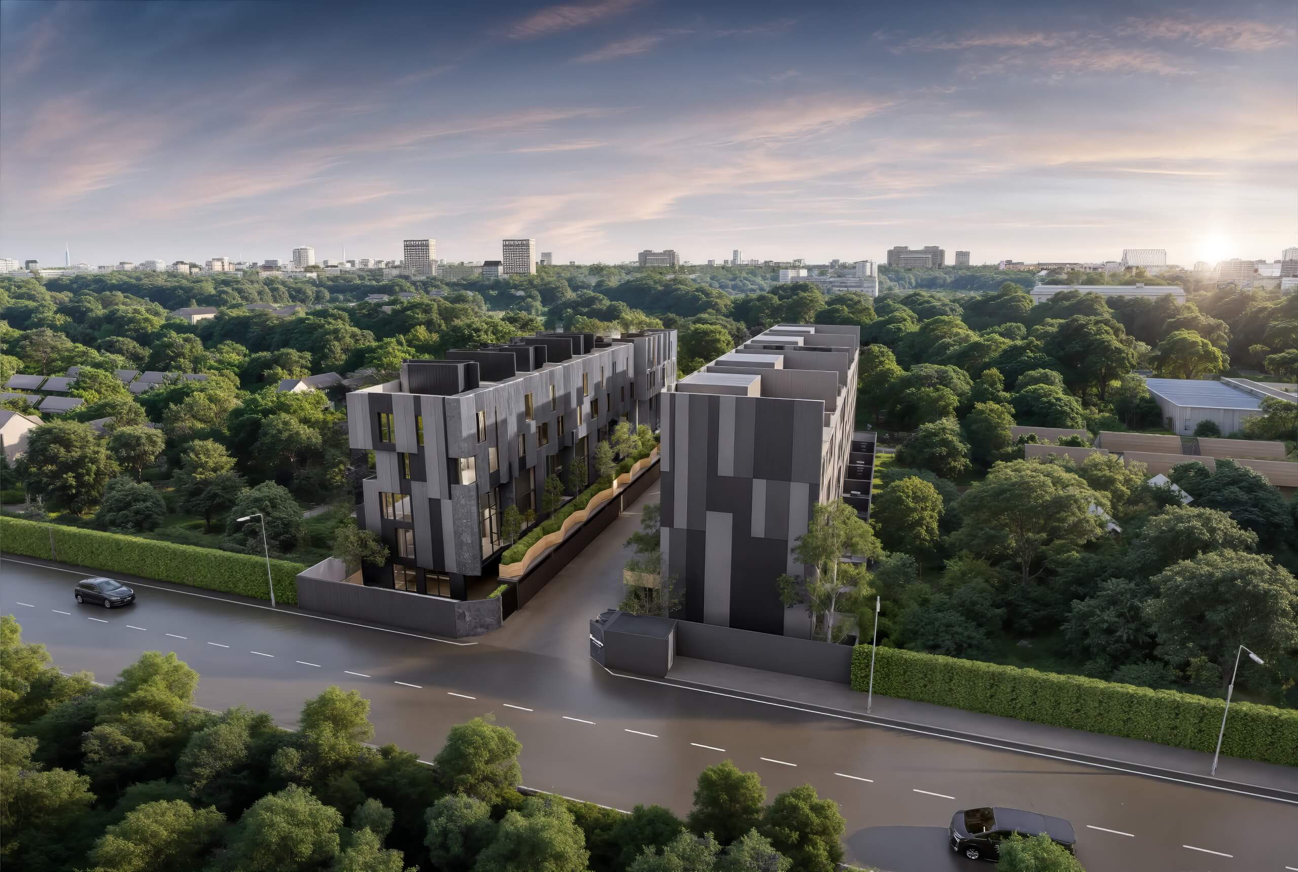 - บ้านแฝด 4.5 ชั้น ขนาด 542 ตารางเมตร จำนวน 2 ยูนิต 4 ห้องนอน , 7 ห้องน้ำ , 2 ห้องนั่งเล่น, 1 ห้องรับประทานอาหาร , 1 ห้องแม่บ้าน, 5 ที่จอดรถ