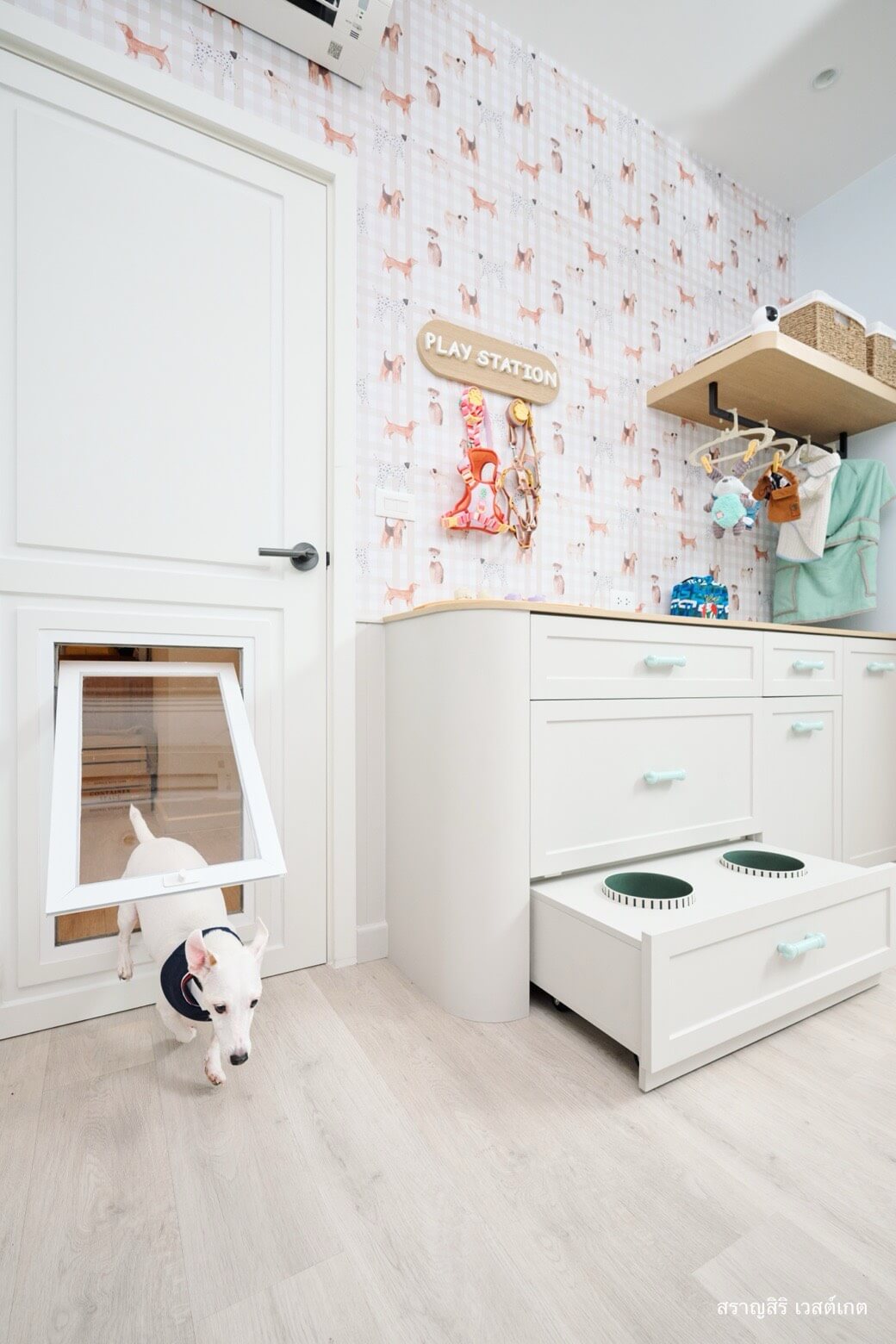 สำหรับเอสบี ดีไซน์สแควร์ การพัฒนาเฟอร์นิเจอร์ที่ตอบโจทย์ครอบครัวที่มีสัตว์เลี้ยงไม่ได้เป็นแค่เทรนด์ แต่คือความตั้งใจในการยกระดับคุณภาพชีวิตของทั้งเจ้าของและเพื่อนซี้สี่ขา จึงได้ออกแบบ 4 นวัตกรรมแห่งความรักภายใต้เฟอร์นิเจอร์แพ็กเกจ “PAWSOME SPACE PACKAGE” ที่คิดขึ้นอย่างพิถีพิถัน เพื่อให้สัตว์เลี้ยงมี “ห้องในฝัน” ของตัวเอง พร้อมพื้นที่ที่ตอบโจทย์ทุกไลฟ์สไตล์ของทุกคนในบ้าน ได้แก่ Pet Door – ประตูแห่งอิสรภาพ ดีไซน์โดยคำนึงถึงพฤติกรรมการเคลื่อนไหวของสัตว์เลี้ยง ช่วยให้น้องหมา–น้องแมวเดินเข้า–ออกได้อย่างอิสระ ไม่ต้องรอเจ้าของ และยังออกแบบให้กลมกลืนกับสถาปัตยกรรมของบ้านได้อย่างลงตัว