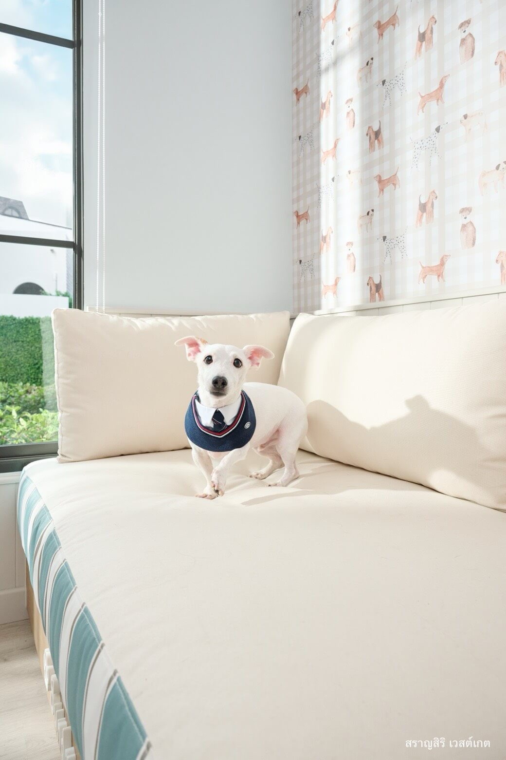 Pet Cabinet & Built-in Food Station – คอนโซลจัดเก็บแบบครบฟังก์ชัน ผสานดีไซน์และฟังก์ชันด้วยชั้นเก็บของที่คิดมาเพื่อบ้านที่มีสัตว์เลี้ยงโดยเฉพาะ มาพร้อม Built-in Food & Drink Station ที่รวมถาดน้ำและถาดอาหารไว้ในตัว ช่วยประหยัดพื้นที่ ดูเรียบร้อย ทำความสะอาดง่าย และเป็นสเตชันให้อาหารที่สวยและใช้งานได้จริงในทุกวัน Pet Friendly Fabric – ผ้าบุเฟอร์นิเจอร์ที่ทนทานสำหรับบ้านที่มีสัตว์เลี้ยง เลือกใช้วัสดุที่ผ่านการทดสอบด้านความทนทานต่อรอยขีดข่วนและรอยกรงเล็บ สะท้อนน้ำได้ดี และยังคงความนุ่มสบาย ทำให้เฟอร์นิเจอร์สวยงามและอบอุ่นอยู่เสมอ ไม่ว่าจะถูกตะกุยหรือปีนป่ายแค่ไหน Human & Pet Day Bed – เตียงแห่งช่วงเวลาอบอุ่น พื้นที่พักผ่อนที่ออกแบบมาเพื่อให้คนในบ้านและสัตว์เลี้ยงใช้ร่วมกันได้อย่างปลอดภัย มาพร้อม Built-in Step บันไดขนาดเล็กที่ช่วยให้น้องสุนัขทุกวัยขึ้น–ลงได้อย่างง่ายดาย เป็นฟอร์นิเจอร์ที่สร้างทั้งความสะดวกสบายและความผูกพันในทุกช่วงเวลา ไม่ว่าจะนอนพักผ่อน ดูวิว หรือเอนหลังด้วยกัน