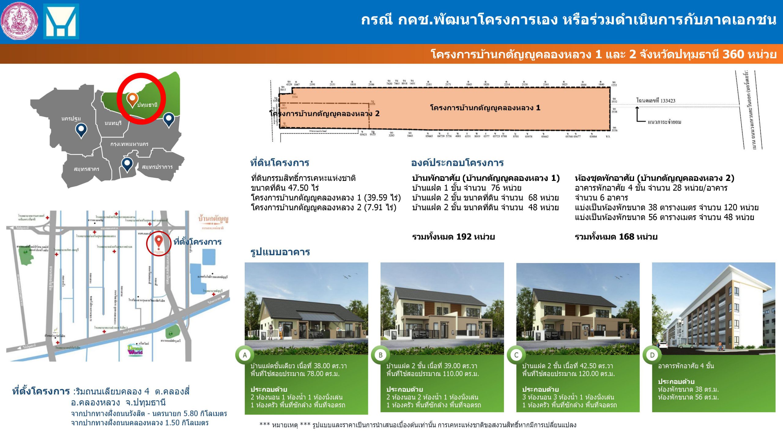 นายธัชพล กาญจนกูล ผู้ว่าการการเคหะแห่งชาติ กล่าวว่า การเคหะฯ ได้เปิดตัวบ้านราคาประหยัดมาตรฐานสูง (Smart Home) ราคาขายอยู่ระหว่าง 350,000-550,000 บาท ซึ่งเป็นอีกหนึ่งโครงการที่การเคหะแห่งชาตินำนวัตกรรมการก่อสร้างที่อยู่อาศัยมาจัดสร้างบ้านที่มีคุณภาพดีเหมาะสำหรับการอยู่อาศัยในสังคมยุคใหม่ โดยนำนวัตกรรมการก่อสร้างแบบชิ้นส่วนคอนกรีตสำเร็จ หรือระบบ Precast มาใช้ เพื่อย่นระยะเวลาการก่อสร้างให้เร็วขึ้น ช่วยลดปัญหาด้านแรงงานไม่เพียงพอ และสามารถควบคุมต้นทุนและคุณภาพได้ดี