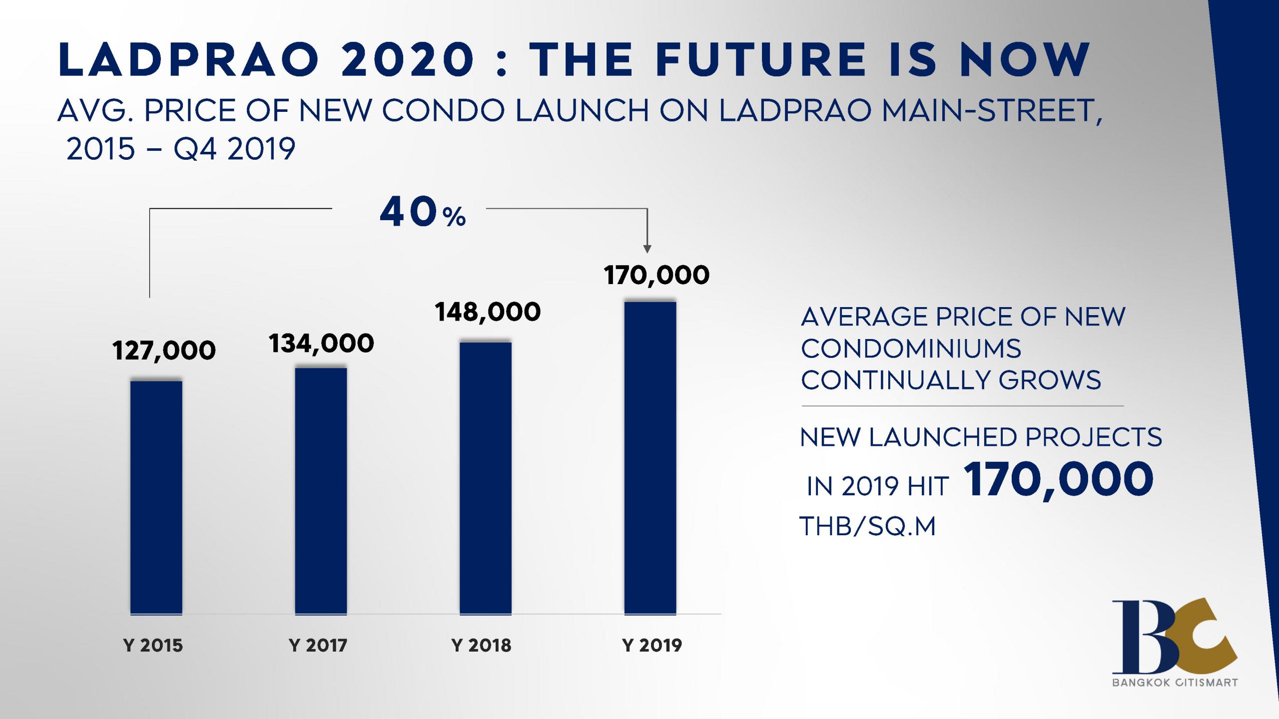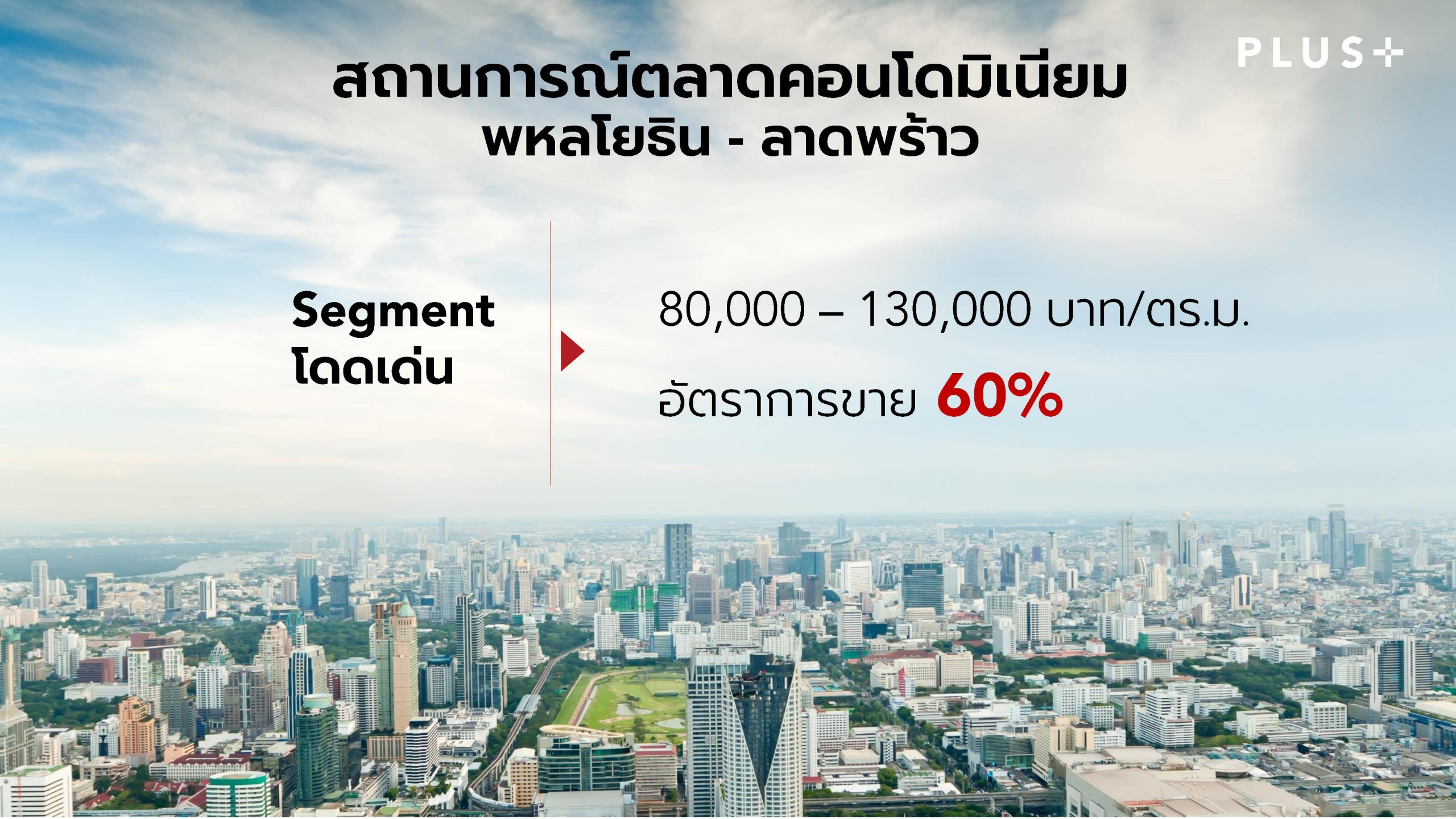 • ในส่วนของภาพตลาดการขายคอนโดมิเนียม ในทำเลพหลโยธิน-ลาดพร้าว มียอดขายเฉลี่ยในปี 2562 อยู่ที่ 57% ซึ่งสูงกว่าค่าเฉลี่ยของภาพรวมพื้นที่กรุงเทพฯอยู่ที่ 42% โดยเซ็กเมนต์ที่ได้รับความสนใจจะเป็นกลุ่มคอนโดในระดับราคา 80,000 -130,000 บาทต่อตร.ม. หรือห้องชุดราคา 3-4 ล้านบาท ที่มียอดตอบรับสูงถึง 60%