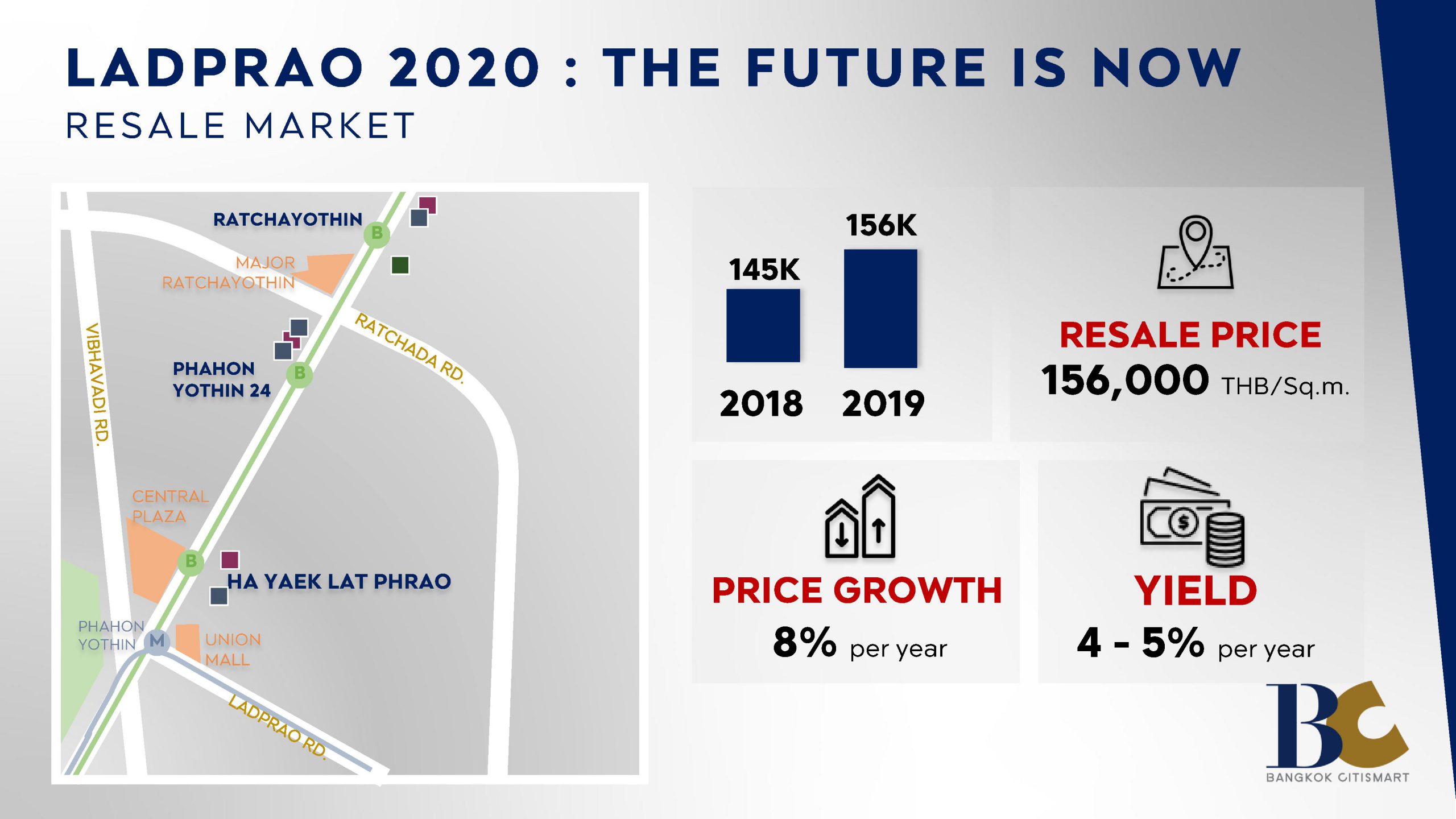 • ราคาที่ดินในบริเวณ BTS ห้าแยกลาดพร้าว มีการปรับตัวขึ้นถึง 10% ต่อปี โดยมีราคาขายอยู่ที่ 6.2 แสนบาท/ตารางวา คาดว่าราคาที่ดินจะขยับขึ้นไปอีกจากความคืบหน้าโครงการรถไฟฟ้าสายสีเขียวส่วนต่อขยายหมอชิต-สะพานใหม่-คูคต