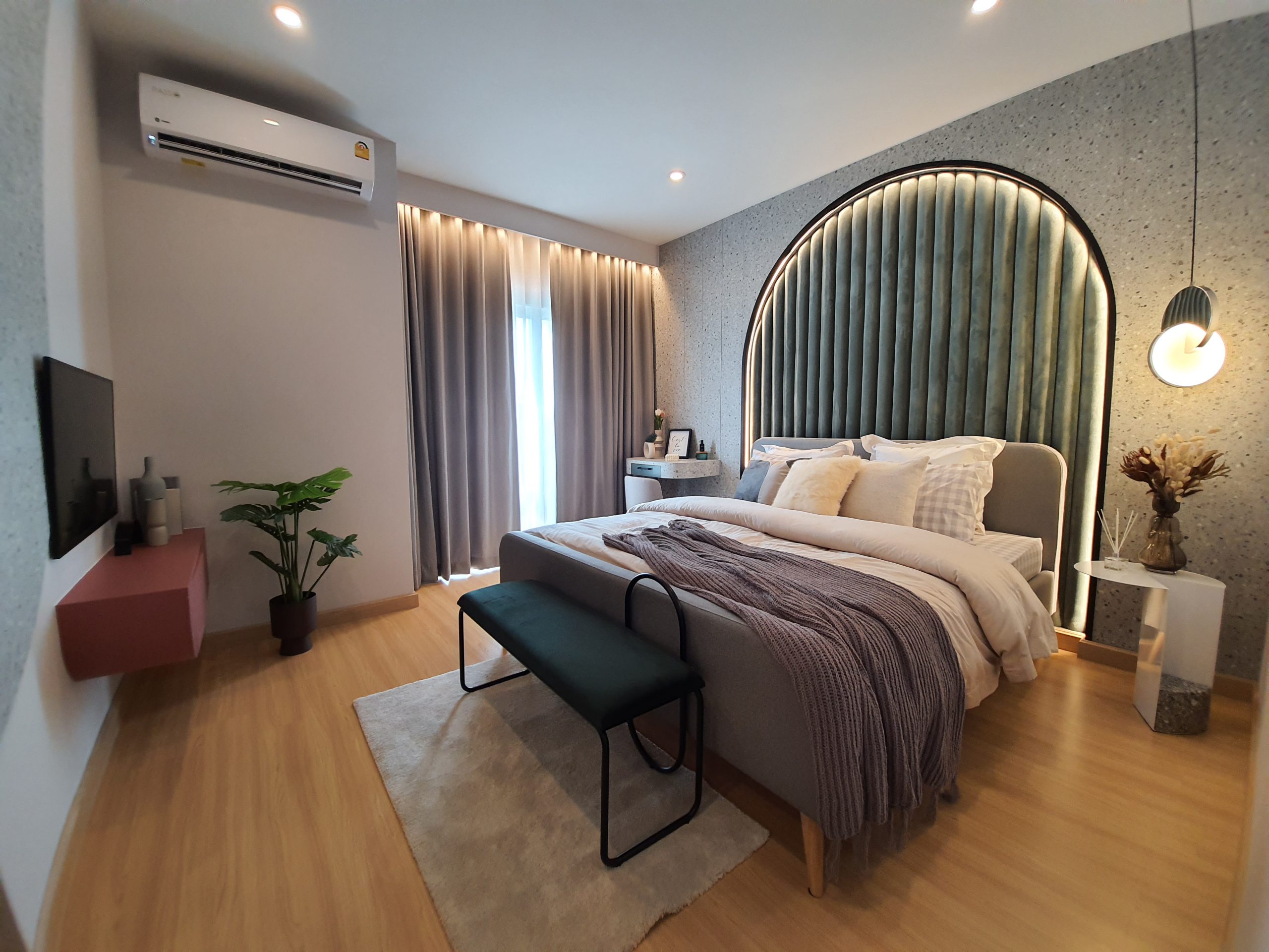 ส่วนห้องนอนอีก 2 ห้องสำหรับสมาชิกตัวน้อยของครอบครัว ถ้าเป็นครอบครัวใหม่ที่ยังไม่มีลูกหรือมีแค่คนเดียว สามารถปรับให้เป็นห้องรองรับการทำงานแบบ work at home หรือการเรียนออนไลน์ learn at home ได้อย่างลงตัว หรือจะจัดเป็นสตูดิโอ สำหรับจัด Podcast หรือขายสินค้าออนไลน์ ก็ตอบโจทย์ชาว Gen z ได้เช่นเดียวกัน