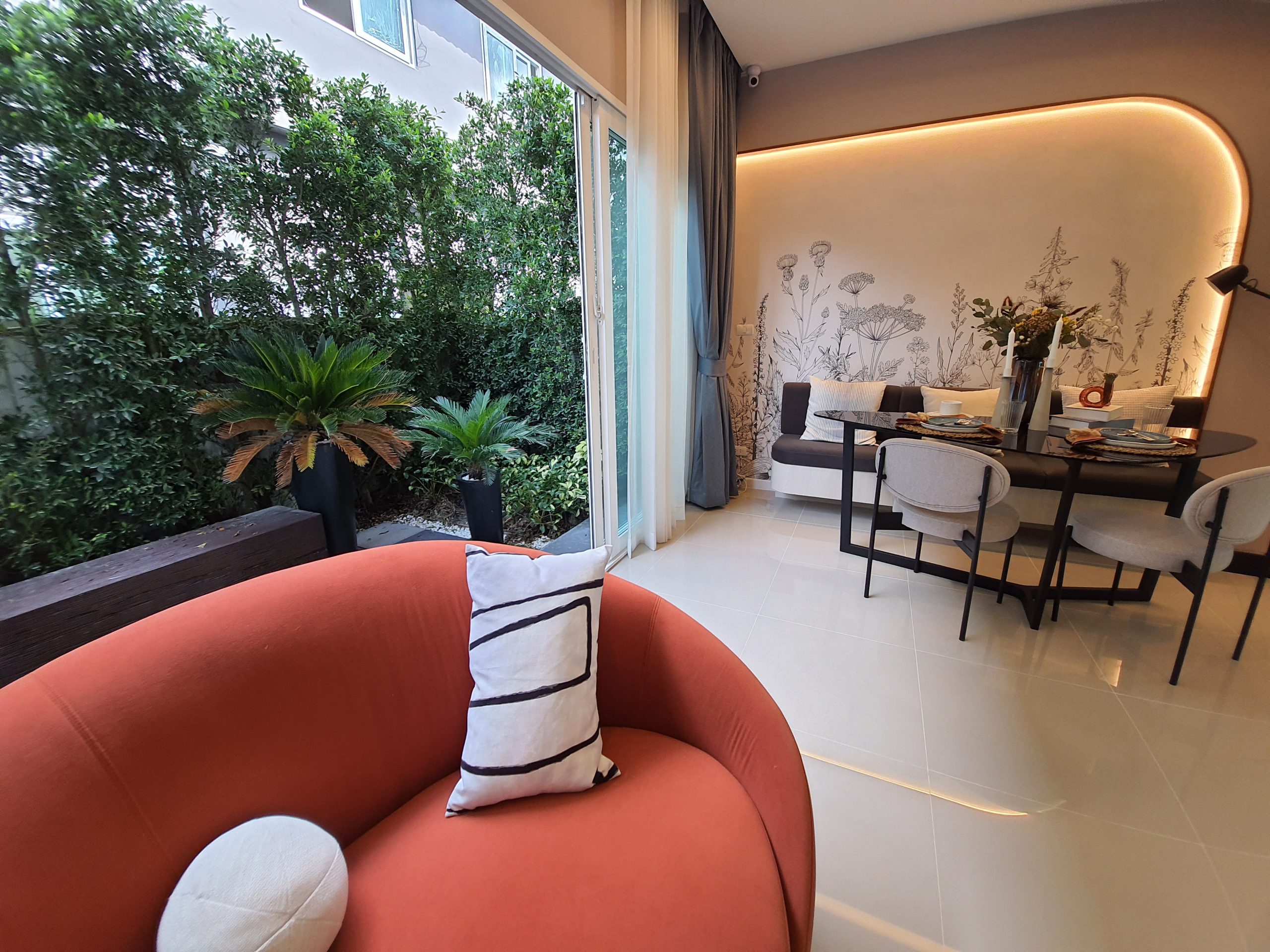 ส่วนพื้นที่ Living & Dining ถูกสลับมาอยู่ด้านหลังเพื่อความเป็นส่วนตัว และยังได้พื้นที่ที่กว้างขวาง โดยมีลักษณะเป็น Open plan ต่อเนื่องกันยิ่งขึ้น ในขณะที่ปรับพื้นที่ส่วนหลังสุดให้เป็นสวนหลังบ้าน เพิ่มบรรยากาศการอยู่อาศัยให้ได้ใกล้ชิดธรรมชาติ น่าอยู่มากยิ่งขึ้น