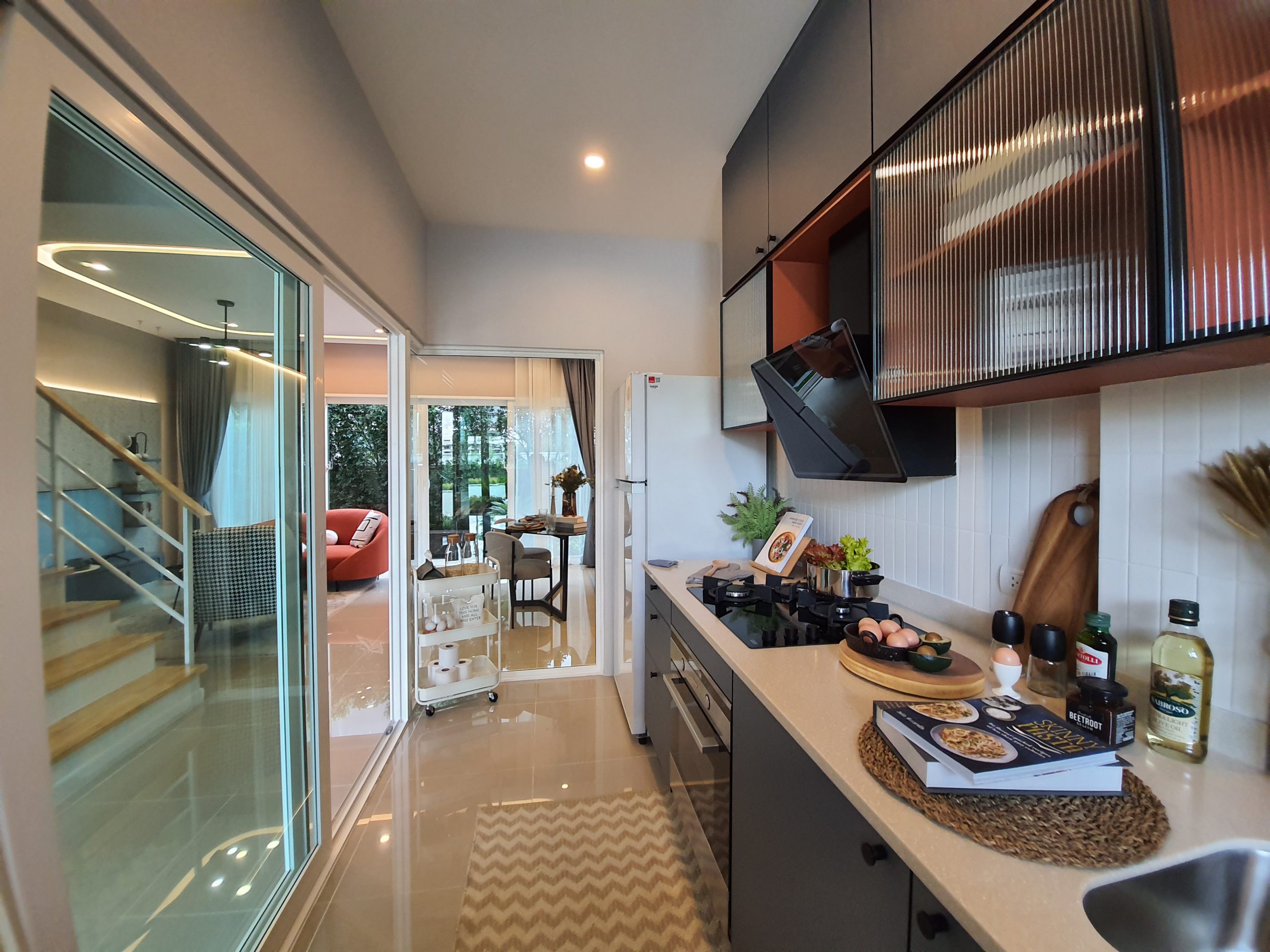 วาปมาที่โครงการ ศุภาลัย พรีโม่ รังสิต ทาวน์โฮม 2 ชั้น ขนาดพื้นที่ใช้สอยสำหรับแปลงกลาง คือ 126 ตร.ม. และสำหรับแปลงมุม คือ 141 ตร.ม. เปิดประตูเข้าบ้านพื้นที่ส่วนแรกที่เราได้พบทางขวาคือพื้นที่ห้องครัวซึ่งถูกออกแบบอย่างเป็นสัดส่วนในขนาดที่กำลังพอเหมาะกับการใช้งาน ป้องกันกลิ่นด้วยการระบายอากาศสู่ภายนอกได้โดยตรงด้วยช่องหน้าต่างด้านหน้าและยังใช้เป็นช่องรับส่งของจากที่จอดรถเข้าครัวได้โดยตรง ส่วนพื้นที่ด้านซ้าย เป็นห้องน้ำรองรับการใช้งานของบ้านชั้นล่าง